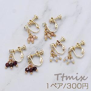 天然石イヤリング 3mm石付 ネジバネ式イヤリング ラウンドカット 3連【1ペア】
