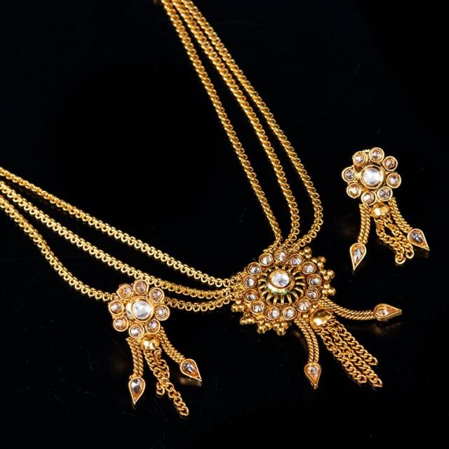 「インドのアクセサリーってゴージャスだけど、コーディネイトが難しくて…」とお悩みのあなたにオススメしたいのが、こちらのピアスとネックレスセットです。