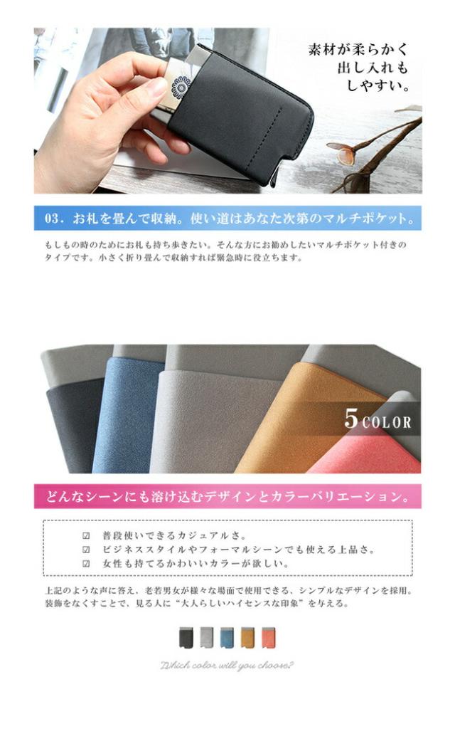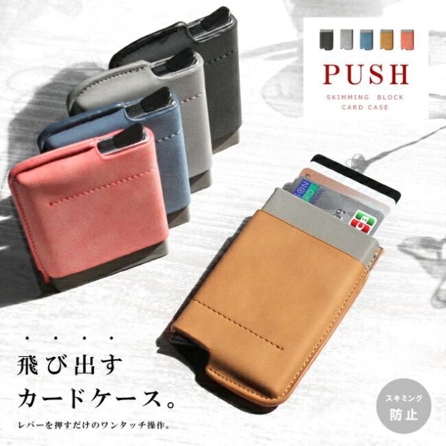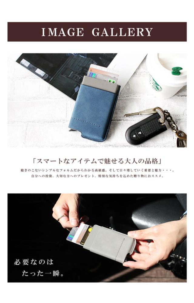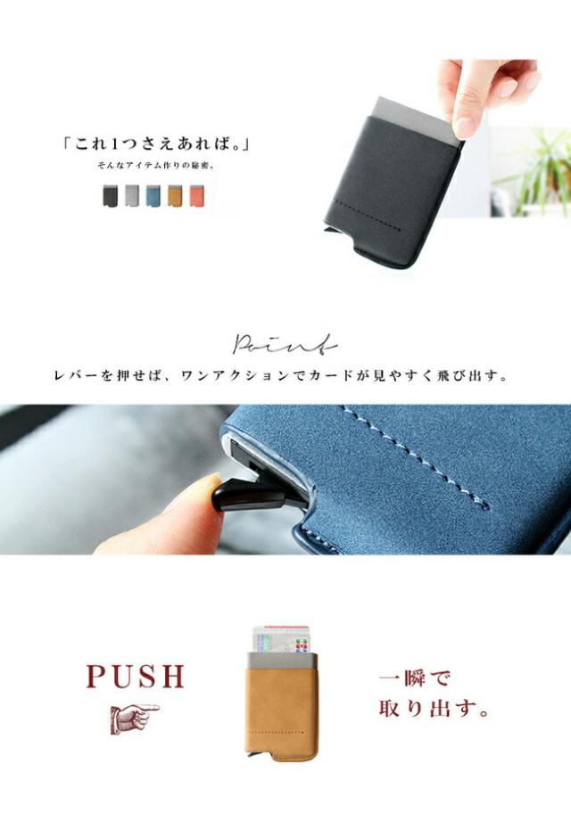 メール便送料無料 カードケース スライド式 スキミング防止 メンズ レディース ユニセックス PU レザー アルミ カード入れ キャッシュレス ミニ財布 パステルカラー スライド ブラック ブラウン ブルー グレー ピンク 【ギフト】 ab-cd010