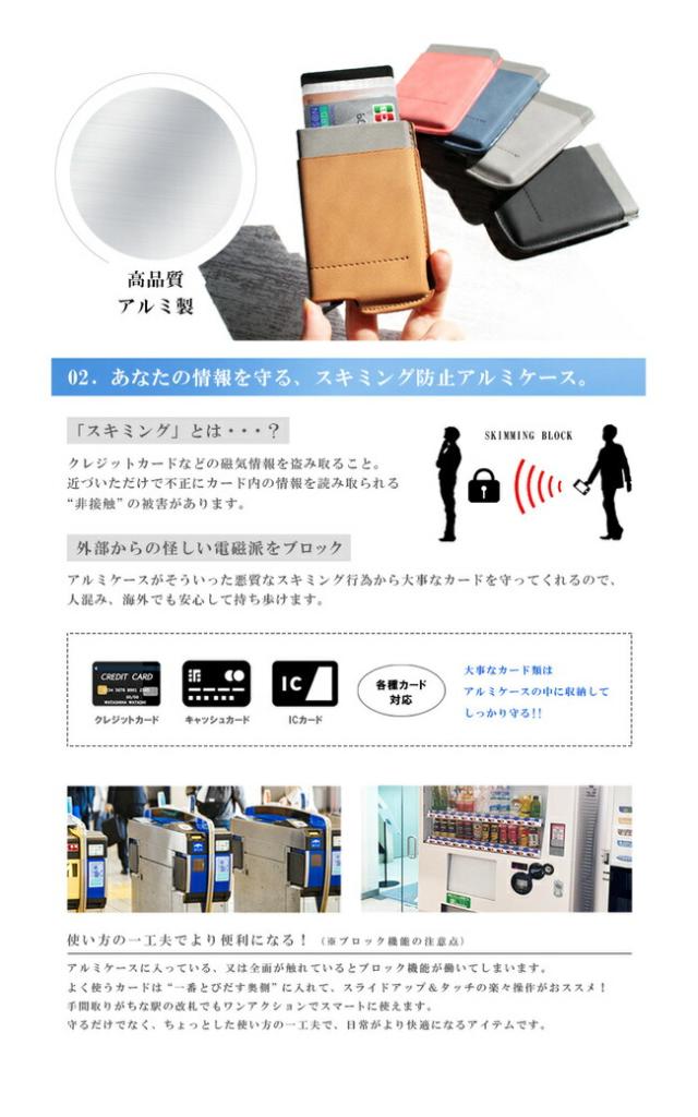 スキミング防止機能が搭載されているので、不正アクセスから大切なカードを守ってくれます。
