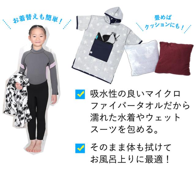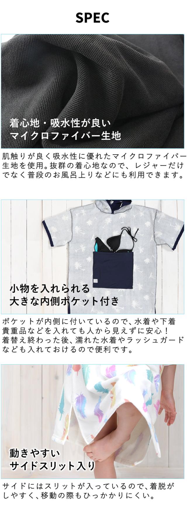 FELLOW 着替えポンチョ フード付き タオル キッズ 子供 吸水速乾 スイムタオル ポンチョタオル