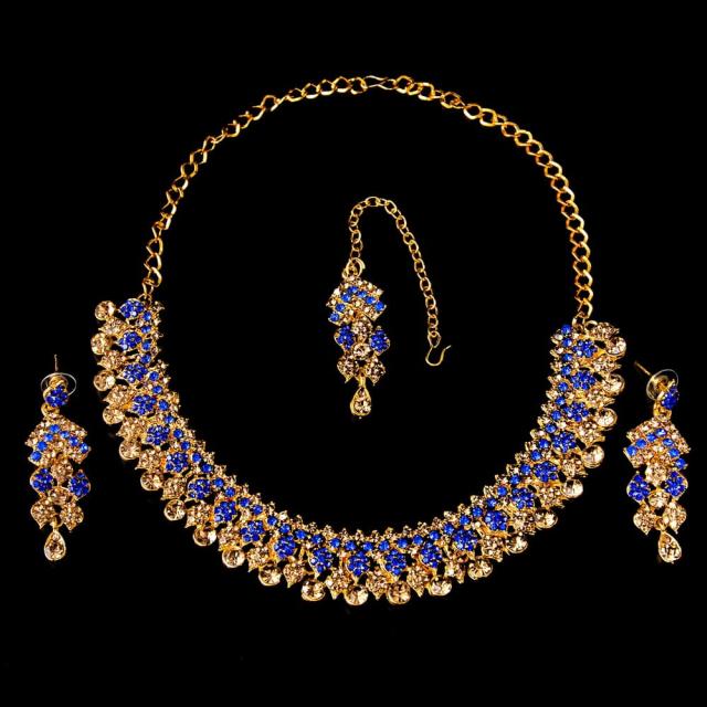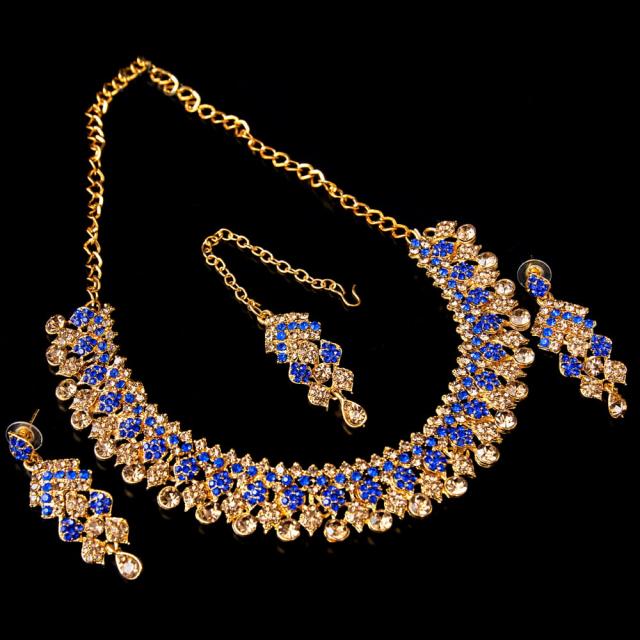インドアクセサリー3点セット〔ネックレス、ピアス、ティッカ〕 パーティーや結婚式などへ / ネックレス、ピアス、アクセサリー、アクセサリーセット、パーティー、結婚式、婚礼用、サリー、パンジャビドレス、ベリーダンス アクセ 【インドとアジアのアクセサリー