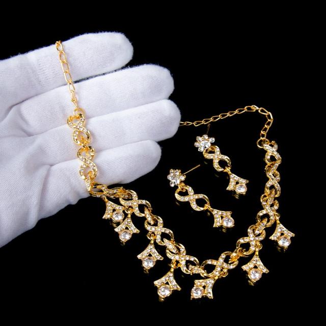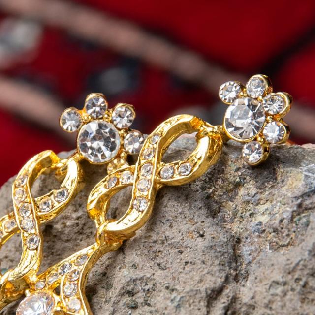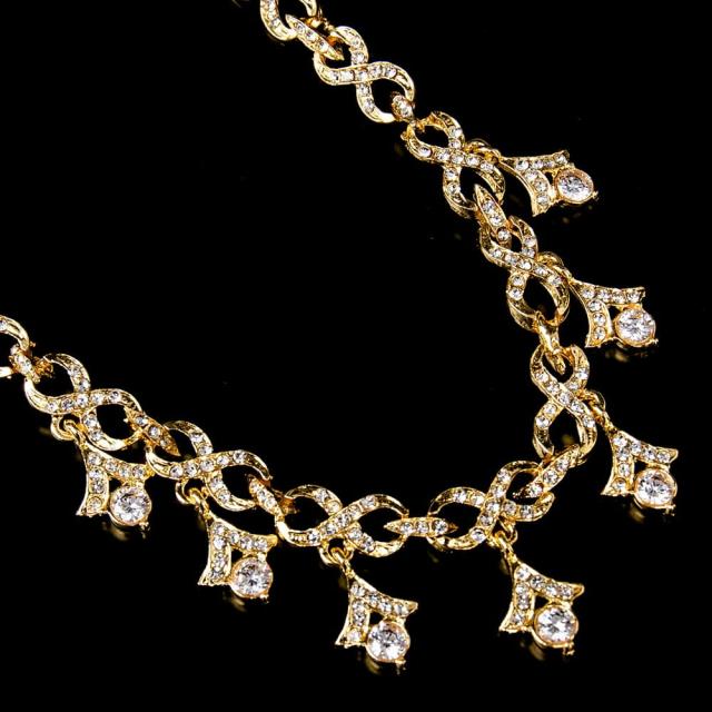 シンプルラインストーンのネックレス&ピアスセット パーティーや結婚式などへ アクセサリーセット / ネックレス、ピアス、アクセサリー、アクセサリーセット、パーティー、結婚式、婚礼用、サリー、パンジャビドレス、ベリーダンス アクセ 【インドとアジアのアクセサリー