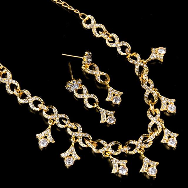 シンプルラインストーンのネックレス&ピアスセット パーティーや結婚式などへ アクセサリーセット / インド ペンダント エスニック アジア アンクレット リング ビンディー