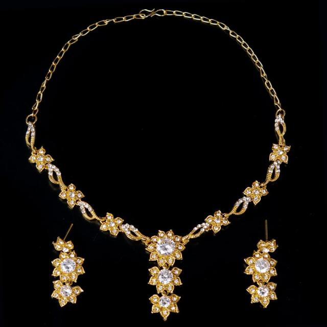 シンプルラインストーンのネックレス&ピアスセット パーティーや結婚式などへ アクセサリーセット / ネックレス、ピアス、アクセサリー、アクセサリーセット、パーティー、結婚式、婚礼用、サリー、パンジャビドレス、ベリーダンス アクセ 【インドとアジアのアクセサリー