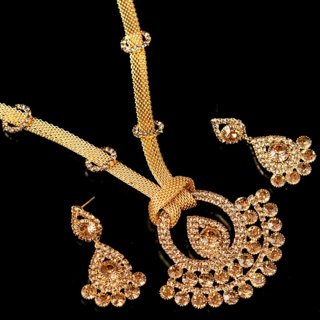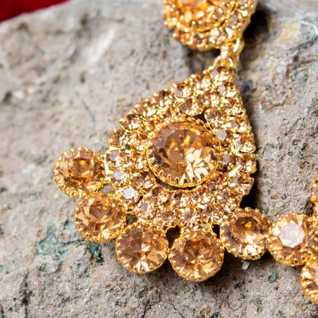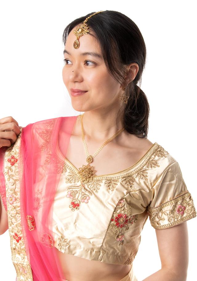 こちらのアクセサリーがやってきたのは、ボリウッド映画やインドファッションの中心地、ムンバイ。照明との相性もよく光を受けて美しく輝きます。パーティーや結婚式など華やかに彩りたい様々なシチュエーションで活躍してくれます。