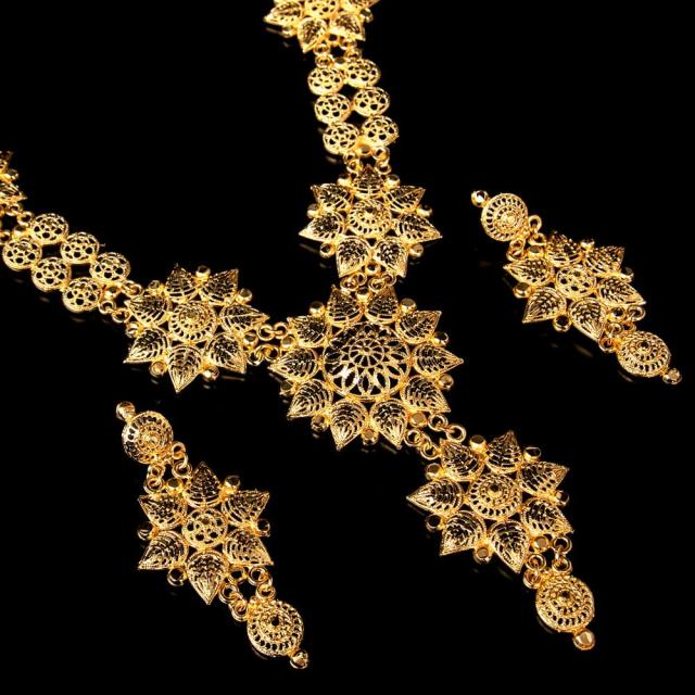 ゴージャス・ゴールド ネックレス&ピアスセット インド伝統アクセサリー / ネックレス、ピアス、アクセサリー、アクセサリーセット、パーティー、結婚式、婚礼用、サリー、パンジャビドレス、ベリーダンス アクセ 【インドとアジアのアクセサリー