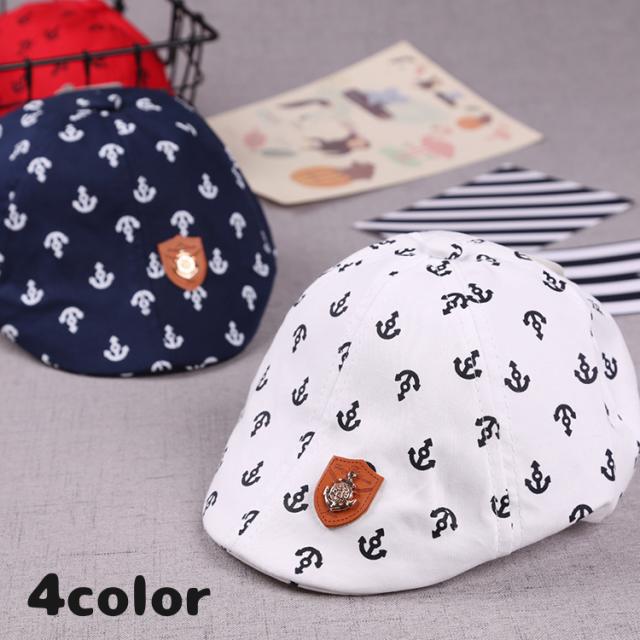 帽子 キッズ 子供 子ども ベビー 赤ちゃん キャップ ハンチング つば付き 男の子 ボーイ 女の子 ガール イカリ 柄 マリン