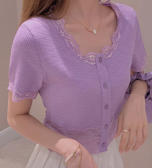 アウター カーディガン レース ラウンドネック 半袖 大きいサイズ カジュアル 春夏 ショート丈 パープル 10代 20代 30代 40代 お出かけ デート お呼ばれ シンプル トレンド 大人女子 かわいい 上品 フェミニン キュート