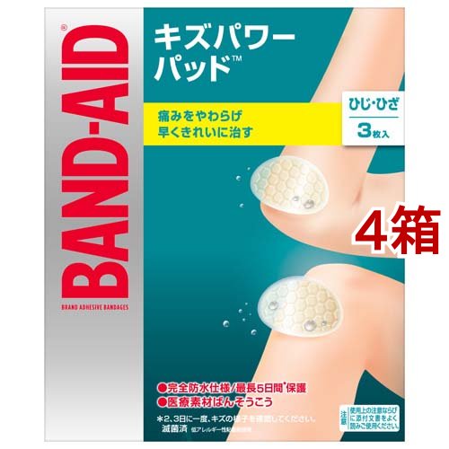 バンドエイド キズパワーパッド ひじ・ひざ用(3枚入*4箱セット)[防水絆創膏 大きめ]