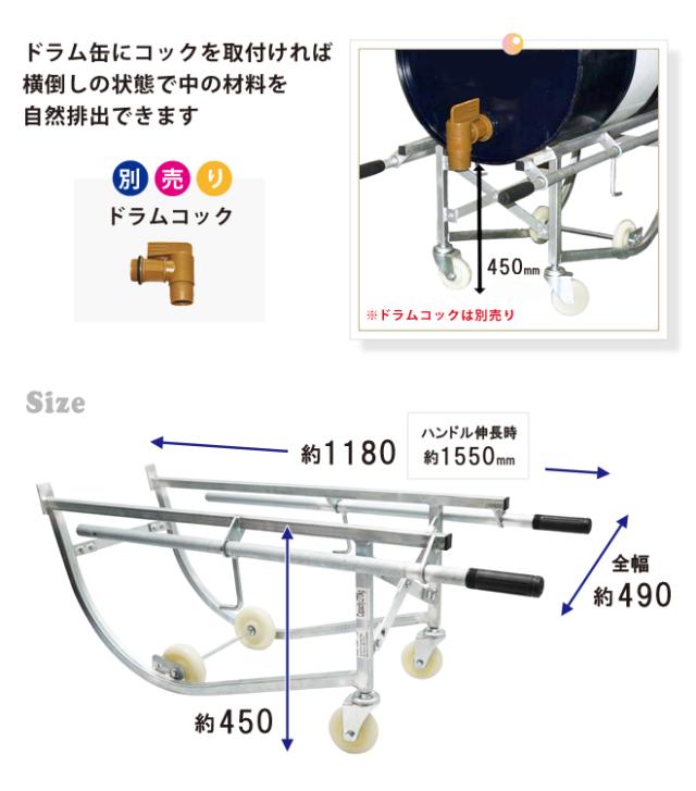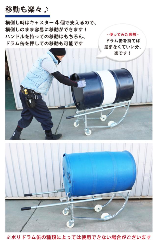 ドラム缶キャリー ドラム缶運搬車 ドラムスタンド 耐荷重210kg ドラムポーター S型 ドラム缶台車 KIKAIYA