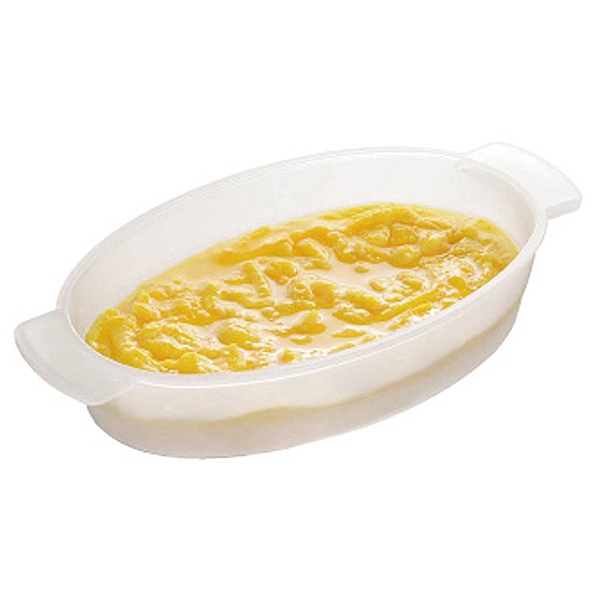 電子レンジでオムレツを調理できるオムレツメーカーです。高脚形状で加熱ムラもできにくいため、ふっくらおいしく作れます。加熱時間を調節すれば半熟にもできます。