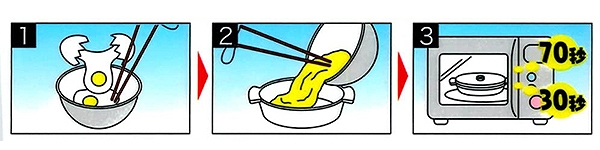 ●卵を割って電子レンジで約100秒で出来上がります。