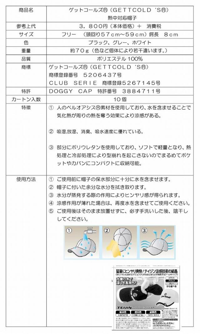 | 商品名 | TEIJIN GETTCOLD'S テイジン ゲットコールズ 熱中対応 |