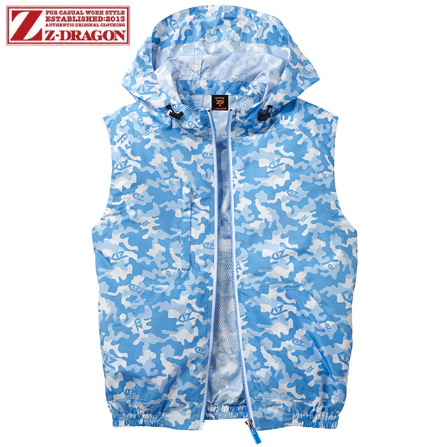 Z-DRAGON 空調服ベスト(ファン無し) フード付き 74190 ブルーカモフラ 自重堂【ジードラゴン空調服】