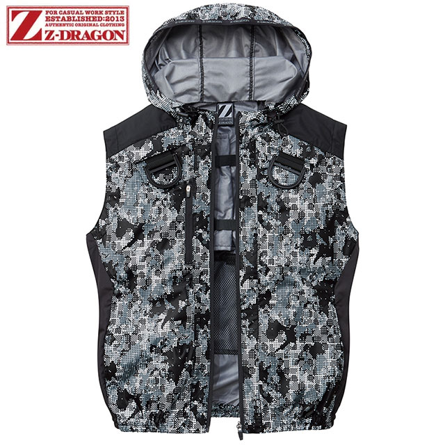 Z-DRAGON 空調服ベスト(ファン無し) フード付き 74200 ブラックカモフラ 自重堂【ジードラゴン空調服】