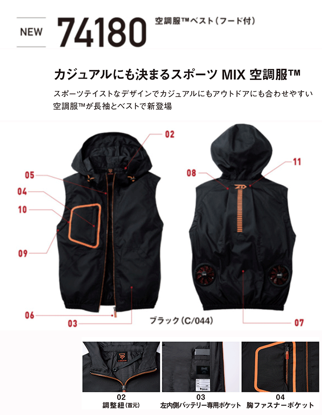 大工 ,建設/建築 ,農業/造園 ,林業 ,Z-DRAGON ,自重堂オリジナル空調服 ,ベスト ,空調服・ファン対応作業服 ,空調服・ファン 作業服 ,男性用 ,女性用 ,男女兼用 ,春夏 ,ポリエステル100% ,野帳対応 ,かっこいい作業服 ,作業着・作業服 ,フード取り外し不可 ,カジュアル ,74180series ,登山
