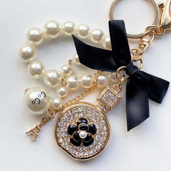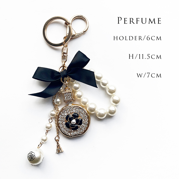 チャーム バッグ バッグチャーム キーホルダー レディース パフューム 香水 カメリア ポニー キーリング パール リボン キラキラ BAGチャーム 完成品 雑貨 お洒落 かわいい メール便送料無料 レディース 可愛い キーケース おしゃれ 母の日 プレゼント ギフト