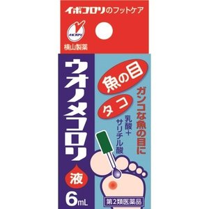 ウオノメコロリは魚の目やタコなどの乾燥した角質を湿らせる作用のある乳酸をサリチル酸に加えて配合し,ガンコな魚の目・タコに,より効果的に工夫された医薬品(角質剥離剤)です。患部に塗布するとすばやく乾燥し,白い被膜をつくり,厚く硬くなった皮膚をやわらかくし,魚の目・タコを取り除きます。痛む患部を保護するウオノメパッド付です。