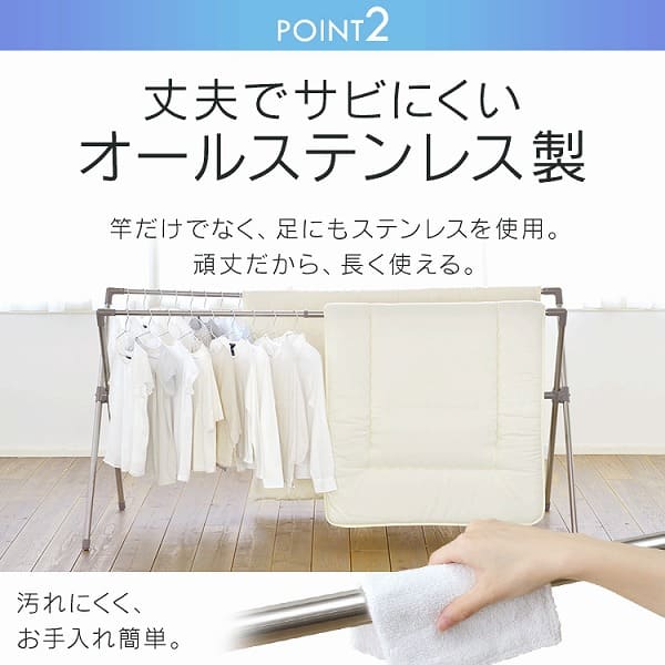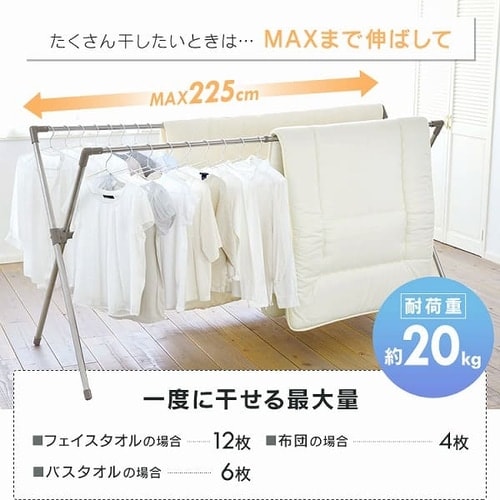 伸縮自在でたっぷり干せるふとん干しです。