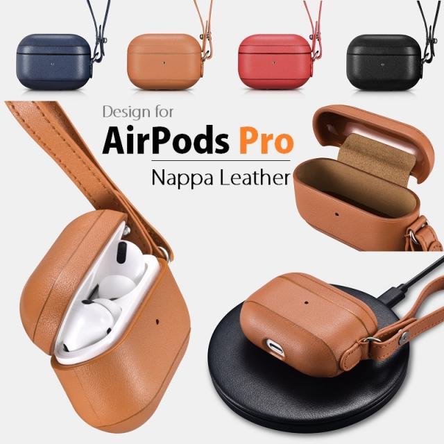 【正規品】iCARER IAP055 アップル AirPods Pro エアポッズ プロ用 ストラップ付 本革 牛革 ナッパレザー 保護ケース 充電可能 携帯便利 インジケータ LED指示灯 孔あり エアポッズケース フック(ブラック、ブラウン、ネイビー、レッド)4カラー選択