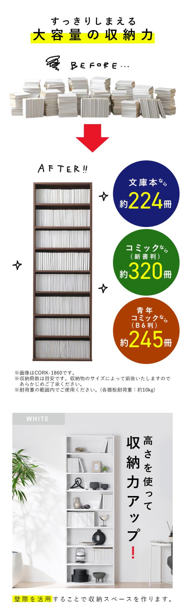 本棚 スリム 大容量 おしゃれ 薄型 アイリスオーヤマ コミックラック 8段 幅約60 高さ180 収納棚 ラック 収納 棚 可動棚付 カラーボックス ブックシェルフ ディスプレイラック 書棚 漫画収納 マンガ コミック 推し活 ハイタイプ CORK-1860R *