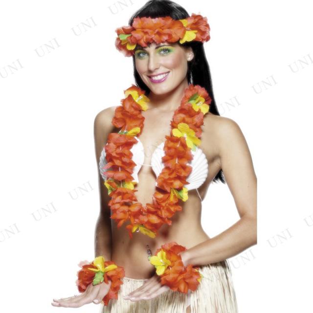 コスプレ 仮装 ハワイアンセット レッド Smiffy's フラダンス衣装 仮装 コスプレ衣装 海外民族衣装 大人 花冠 レイ 腕飾り