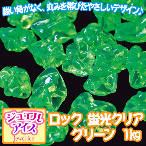 ジュエルアイス ロック 蛍光クリア グリーン 1kg キッシーズ 宝石すくい アクリルアイス お祭り 縁日用品 蛍光タイプ 丸みを帯びたデザイン