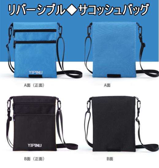 LAZA サコッシュ バッグ ショルダーバッグ ブルー×ブラック リバーシブル 小さめ 旅行 大容量 防水