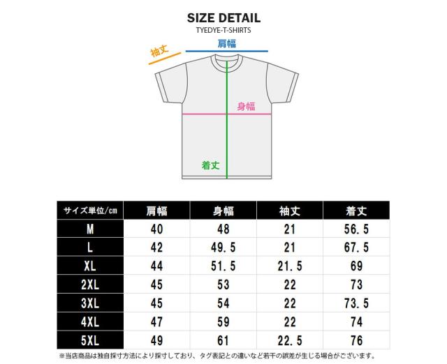 | 今期のストリートコーデには欠かせないタイダイ柄Tシャツが登場!! どんなコーデにも合わせやすいベーシックなグレーから、 コーデのポイントとなるカラーなど全6色展開! また、どなた様にも着ていただけるよう、サイズもMから5XLまで7sizeご用意いたしました◎ | |