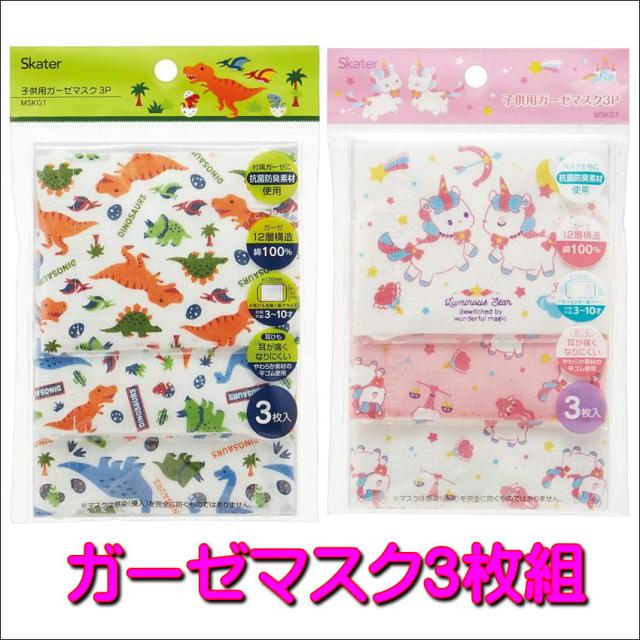 3枚組 子供 ガーゼ 12層 抗菌防臭 綿100% マスク キャラクター給食用 こども ディノサウルス ユニコーン スケーター MSKG1