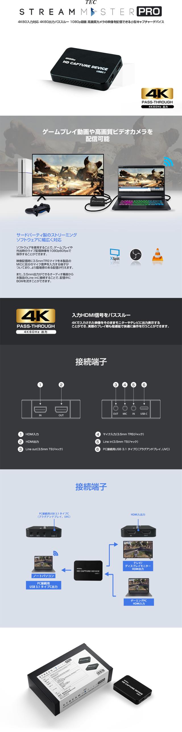 ビデオキャプチャー 4K画質 HDMIスルー対応TSMLIVE-4KPRO STREAM MASTER PRO TEC