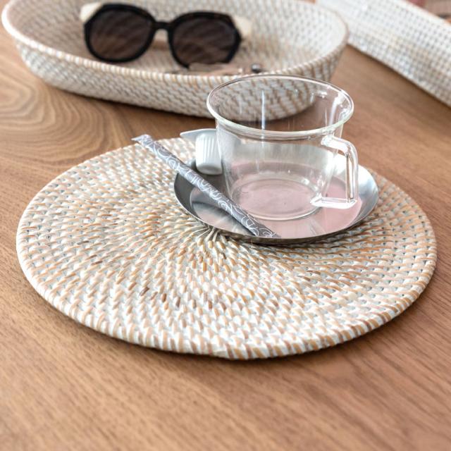ランチョンマット ラタン製 ホワイトウォッシュ 丸形 プレイスマット キッチン雑貨 テーブルコーディネート テーブルマット アジアン雑貨 カフェ風