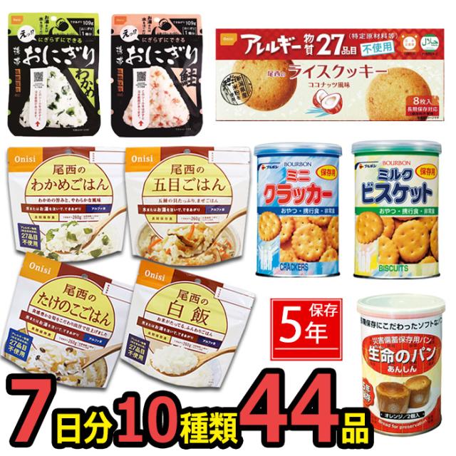 非常食 防災セット 非常食44点セット 7日分 防災 ごはん おにぎり 5年保存詰め替え用 備蓄用 防災グッズ 非常食 災害対策 地震対策 防災用品 防災セット 避難グッズ 家族 避難用品 キャンプ アウトドア わかめごはん たけのこごはん 五目ごはん 【7-10日】