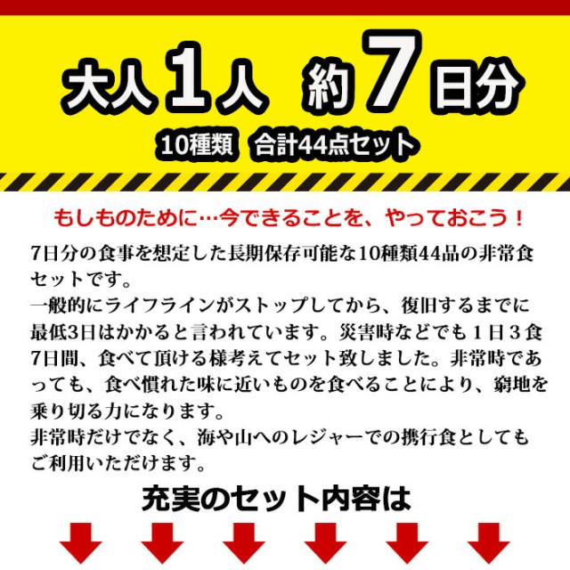 非常食44点セット 1人約7日分 詰め替え、ご家族分に