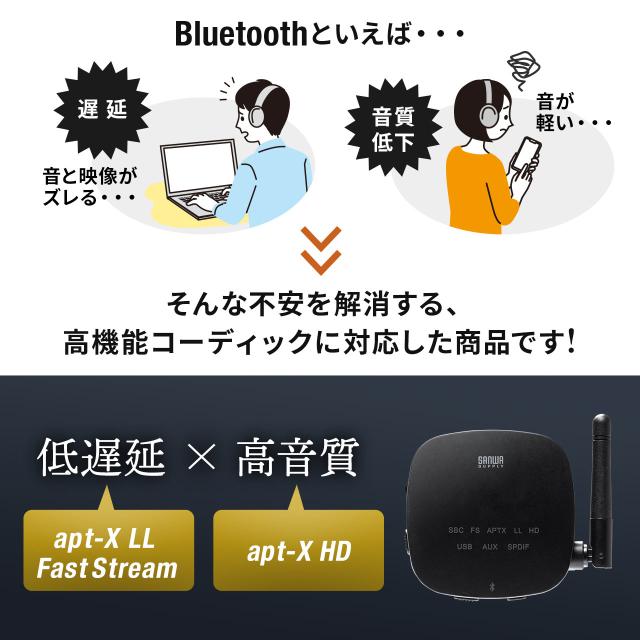⇒ご購入の前にご確認下さいBluetoooth非対応のテレビやヘッドホンをワイヤレス化。音声信号をワイヤレスで送受信できるBluetoothトランスミッター&レシーバー。高音質コーデック「apt-X HD」や低遅延な「apt-X LL」に対応。【WEB限定商品】