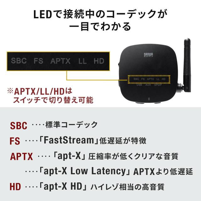 ※apt-X/apt-X Low LatencyはSCMS-Tに対応していません。スマートフォンのワンセグなど一部アプリケーションでは使用できません。