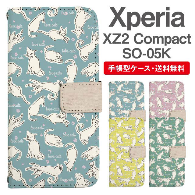 スマホケース 手帳型 Xperia XZ2 Compact エクスペリア SO-05K 携帯ケース カバー 送料無料 ねこ 猫 アニマル 動物 agesugi_ssm