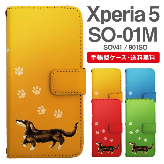 スマホケース 手帳型 Xperia 5 エクスペリア SO-01M SOV41 901SO 携帯ケース カバー 送料無料 ダックスフンド いぬ 犬 アニマル 動物 agesugi_ssm
