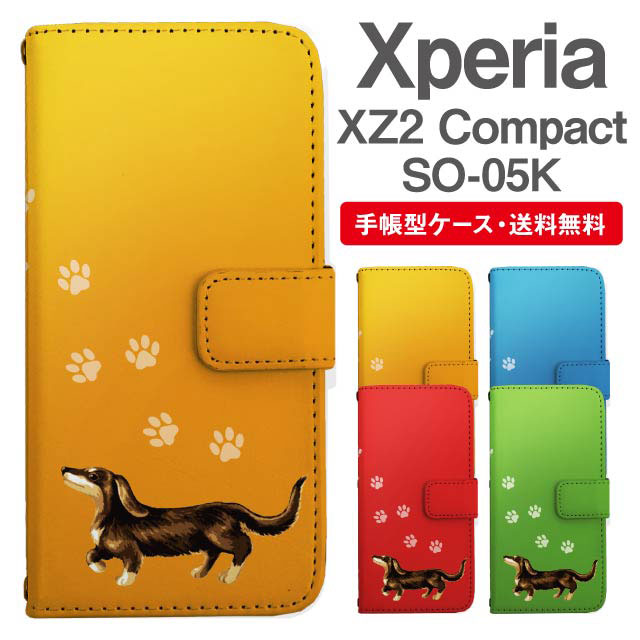 スマホケース 手帳型 Xperia XZ2 Compact エクスペリア SO-05K 携帯ケース カバー 送料無料 ダックスフンド いぬ 犬 アニマル 動物 agesugi_ssm
