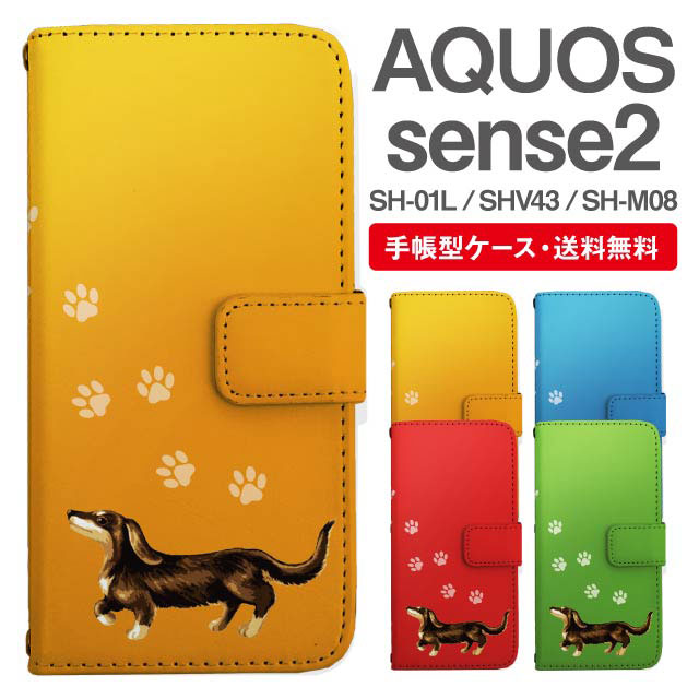 スマホケース 手帳型 AQUOS sense2 アクオス SH-01L SHV43 SH-M08 携帯ケース カバー 送料無料 ダックスフンド いぬ 犬 アニマル 動物 agesugi_ssm