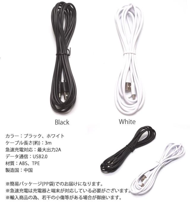 充電ケーブル Type-C ケーブル 3m 急速充電 データ通信 TypeC スマートフォン 充電