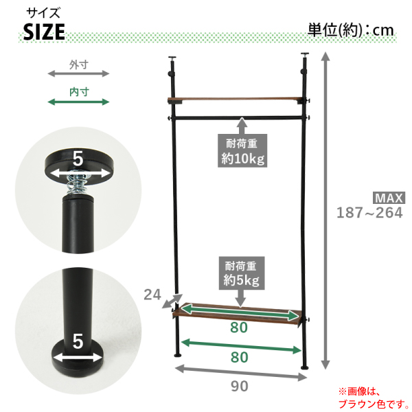 突っ張り ハンガーラック (大) ブラックブラウン 幅90cm ラック スチール オープン ハンガー 洋服掛け 収納 間仕切り 代引不可