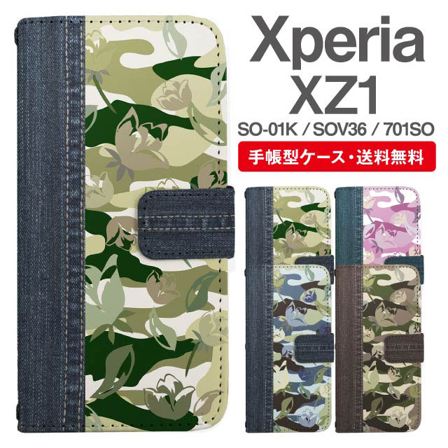 スマホケース 手帳型 Xperia XZ1 エクスペリア SO-01K SOV36 701SO 携帯ケース カバー 送料無料 迷彩 カモフラージュ フラワー デニム風プリント agesugi_ssm