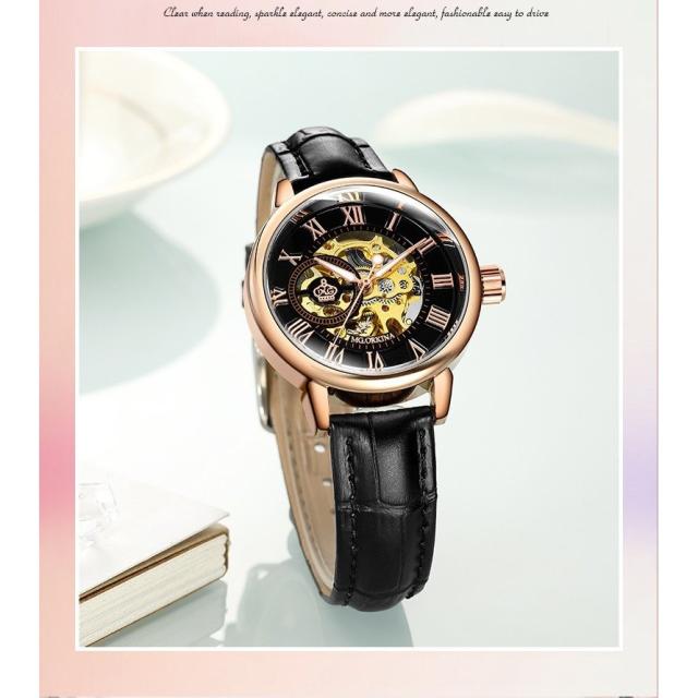 ORKINA レディース腕時計 機械式 自動巻き スケルトン カジュアル ドレス ファッション レザーバンド