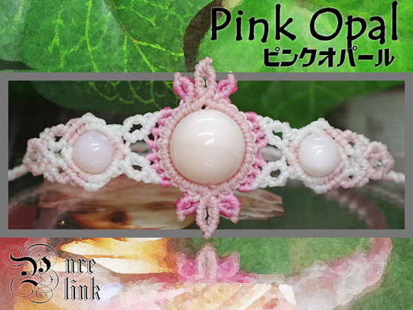 愛情を表す桜色の魔石『ピンクオパール』マクラメ編ブレスレット