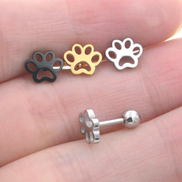 イヌやネコの可愛い肉球をデザインした18ゲージのストレートバーベル型ボディピアス。