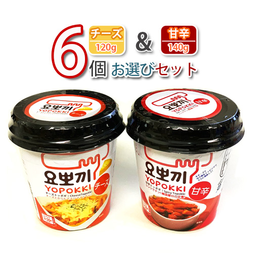 送料無料 カップトッポキ ヨポキ お選び6個セット 甘辛味(140g) x チーズ味(120g) 韓国屋台の定番おやつ 韓国食品 韓国 韓国お菓子 韓国お餅料理 もちもち トッポキ