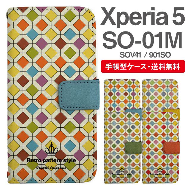 スマホケース 手帳型 Xperia 5 エクスペリア SO-01M SOV41 901SO 携帯ケース カバー 送料無料 タイル柄 agesugi_ssm