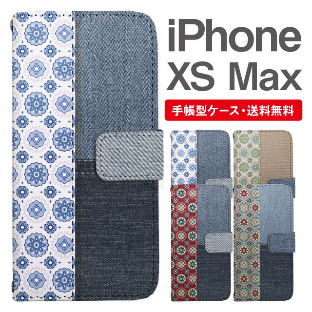 スマホケース 手帳型 iPhone XS Max アイフォン 携帯ケース カバー 送料無料 デニム柄 フラワー ドット agesugi_ssm